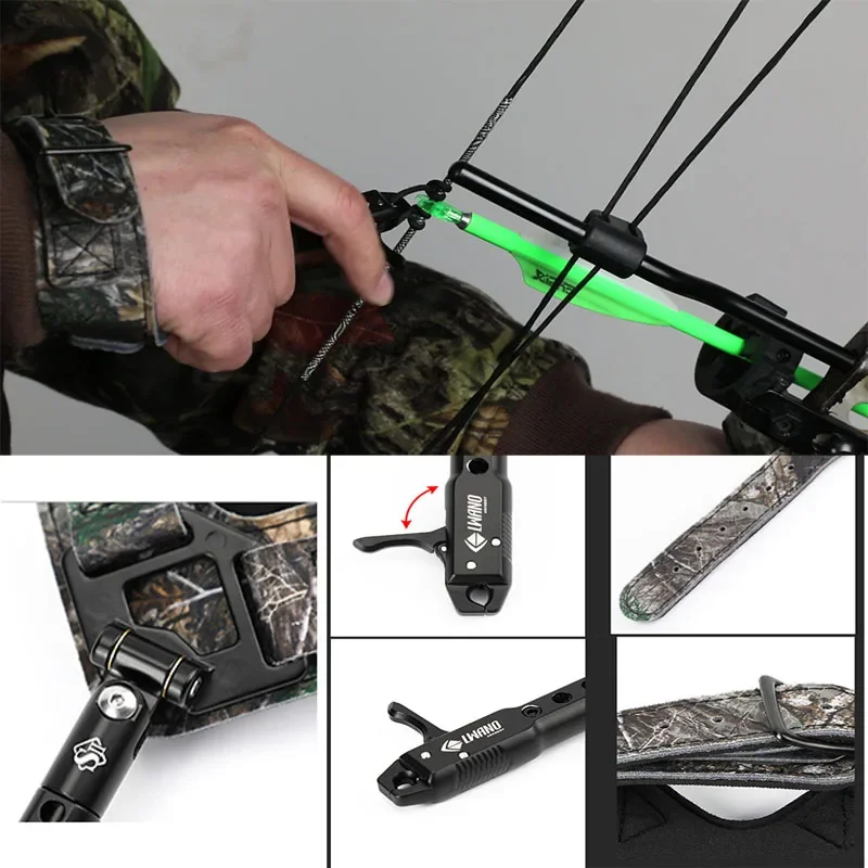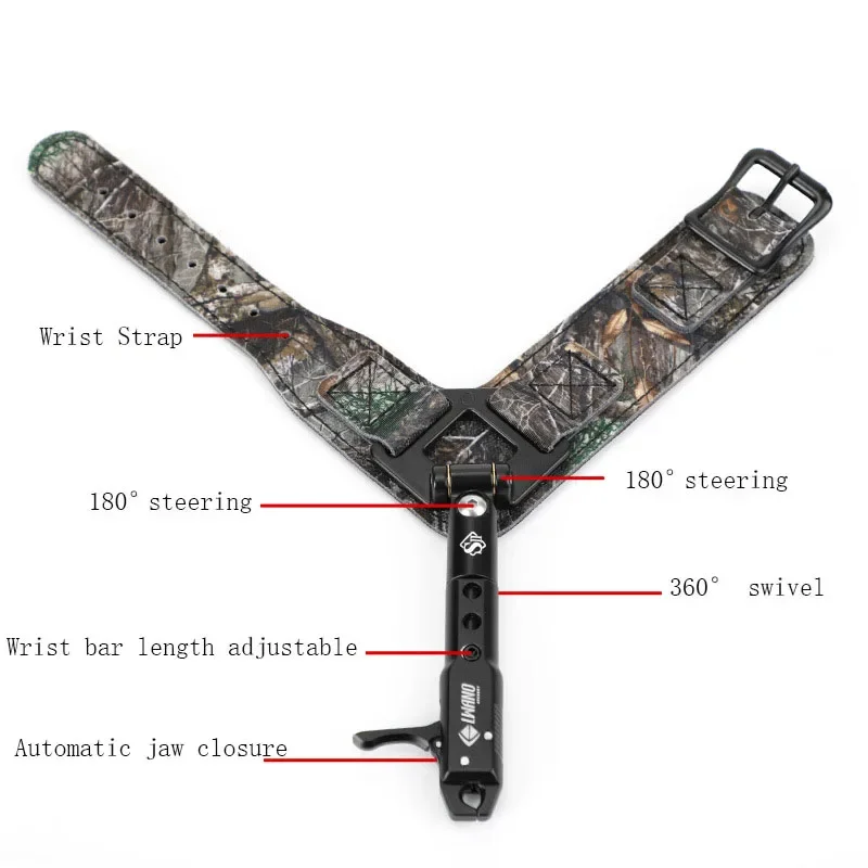 Improve your shot control with this foldable wrist strap release aid—designed for compound bows and precision archery. Featuring a 360° rotating caliper head and smooth trigger action, it ensures consistent arrow release and reduced hand fatigue during hunting and target shooting.