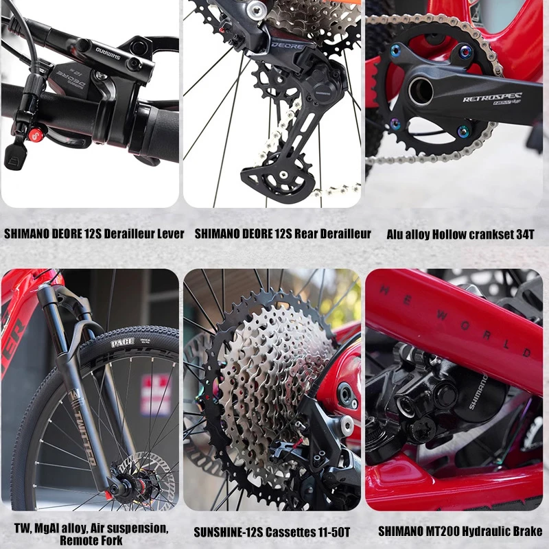 Equipped with a 12-speed professional gear kit, this MTB ensures smooth shifting, speed control, and reliable handling for competitive cycling or outdoor adventure. Its double suspension design enhances comfort and control, making it ideal for endurance rides and challenging trails. Explore more outdoor gear to complete your adventures—whether cycling, camping, hiking, or all-around outdoor pursuits.