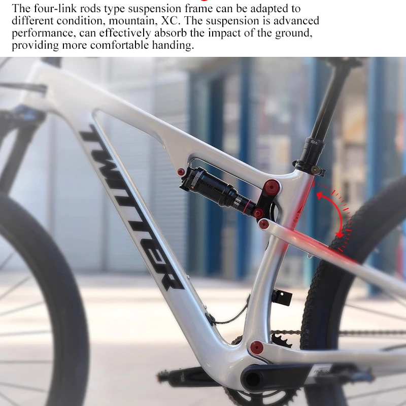 Ride with confidence on this full suspension carbon fiber mountain bike, built for both cross-country and downhill performance. Featuring a lightweight yet durable carbon frame, it delivers stability, agility, and shock absorption across rugged terrain.