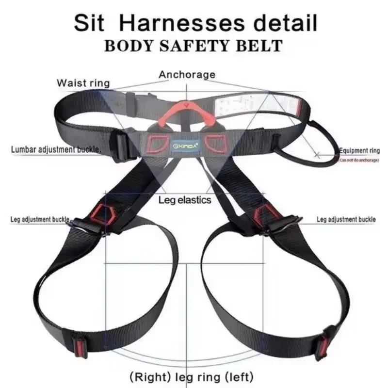 Stay secure and comfortable during vertical adventures with this half-body climbing safety harness—designed for men, women, and children. Ideal for rock climbing, tree climbing, rappelling, and outdoor exploration, it features adjustable straps for a snug, customized fit across various body types.