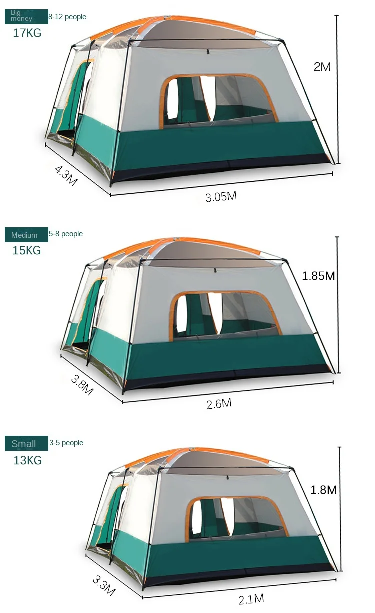 Enjoy reliable comfort outdoors with this portable thickened camping tent, designed for families and groups of 3–12 people. Its spacious one-hall layout provides ample room for sleeping, storage, and gathering, making it ideal for camping trips and outdoor activities.
